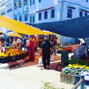 新市街ではシャウエンで暮らしてる人々が、普段利用しているお店市場が見られます。モロッコで売られてる日本では珍しい野菜、果物もあります。
